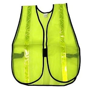 Product Description : : PVC coated 100% nylon mesh Lime Safety Vest Very cool, comfortable, lightweight, durable and economical High visibility 1 3/8" fluorescent yellow retro-reflective strips front & back Velcro front and side closures UV resistant and does not break down under sunlight One size fits all Applications: Construction sites, Parking attendants, Roadside or sidewalk maintenance workers, Traffic control, Motorcycle safety vest, Railroad maintenance crews, Railway workers, Utility workers